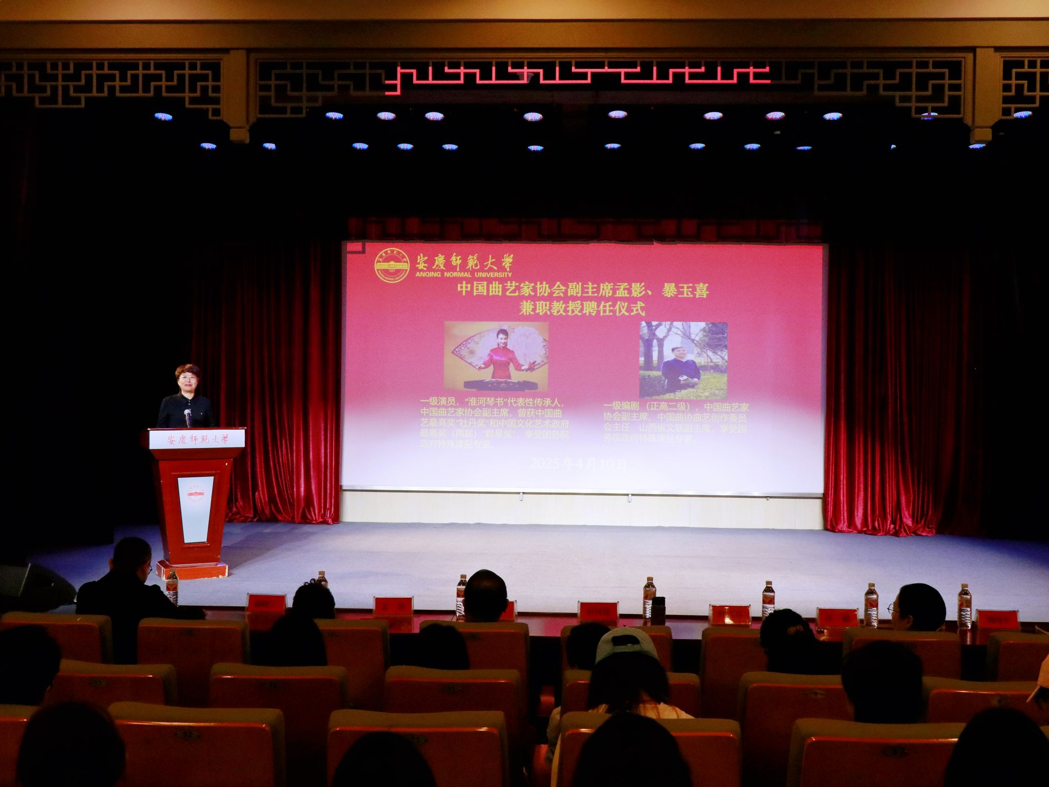 4月10日,學校舉辦曲藝學科兼職教授聘任儀式暨專家報告會。中國曲藝家協會副主席孟影、暴玉喜,校長彭鳳蓮,校黨委常委、副校長徐曉寧,中國戲劇家協會副主席、黃梅劇藝術學院學術院長韓再芬,黃梅劇藝術學院班子成員及師生代表參加聘任儀式和報告會。聘任儀式由徐曉寧主持。