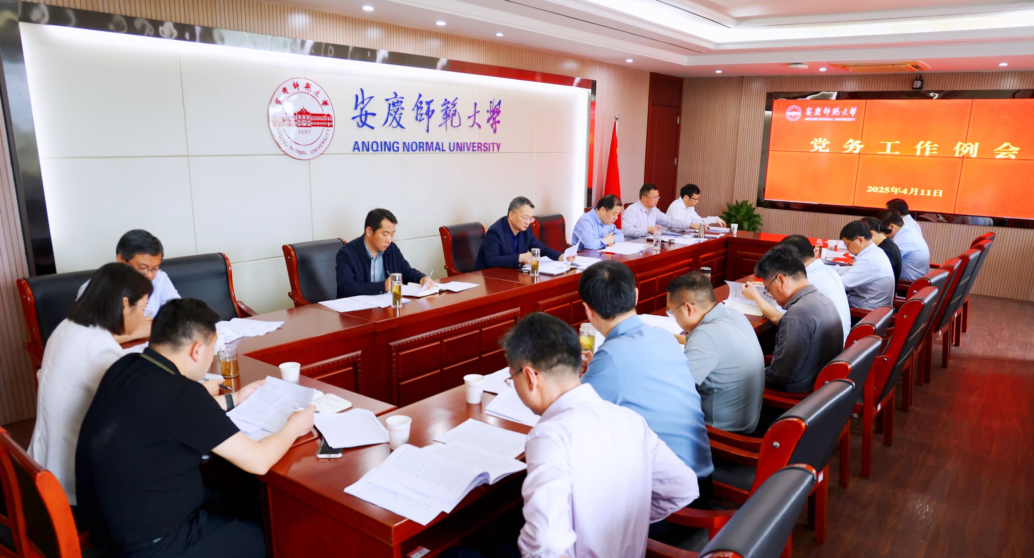 4月11日,學校召開黨務工作例會。校黨委書記李福華出席會議,校黨委副書記崔明主持會議,校黨委常委張紅飛、計裕人,各院級黨組織、黨群部門負責人參加會議。