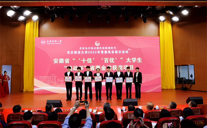 李福華、彭鳳蓮等校黨政領(lǐng)導(dǎo)分別為“挑戰(zhàn)杯”“大藝展”等高水平學(xué)科競(jìng)賽全國獲獎(jiǎng)項(xiàng)目,“中國大學(xué)生自強(qiáng)之星”、安徽省五四紅旗團(tuán)委等團(tuán)學(xué)系統(tǒng)全國和安徽省先進(jìn)集體和個(gè)人,校“兩紅兩優(yōu)”先進(jìn)集體和個(gè)人,校“十佳青年”“優(yōu)秀青年”“創(chuàng)新創(chuàng)業(yè)之星”“志愿服務(wù)之星”獲得者頒發(fā)證書和獎(jiǎng)杯。