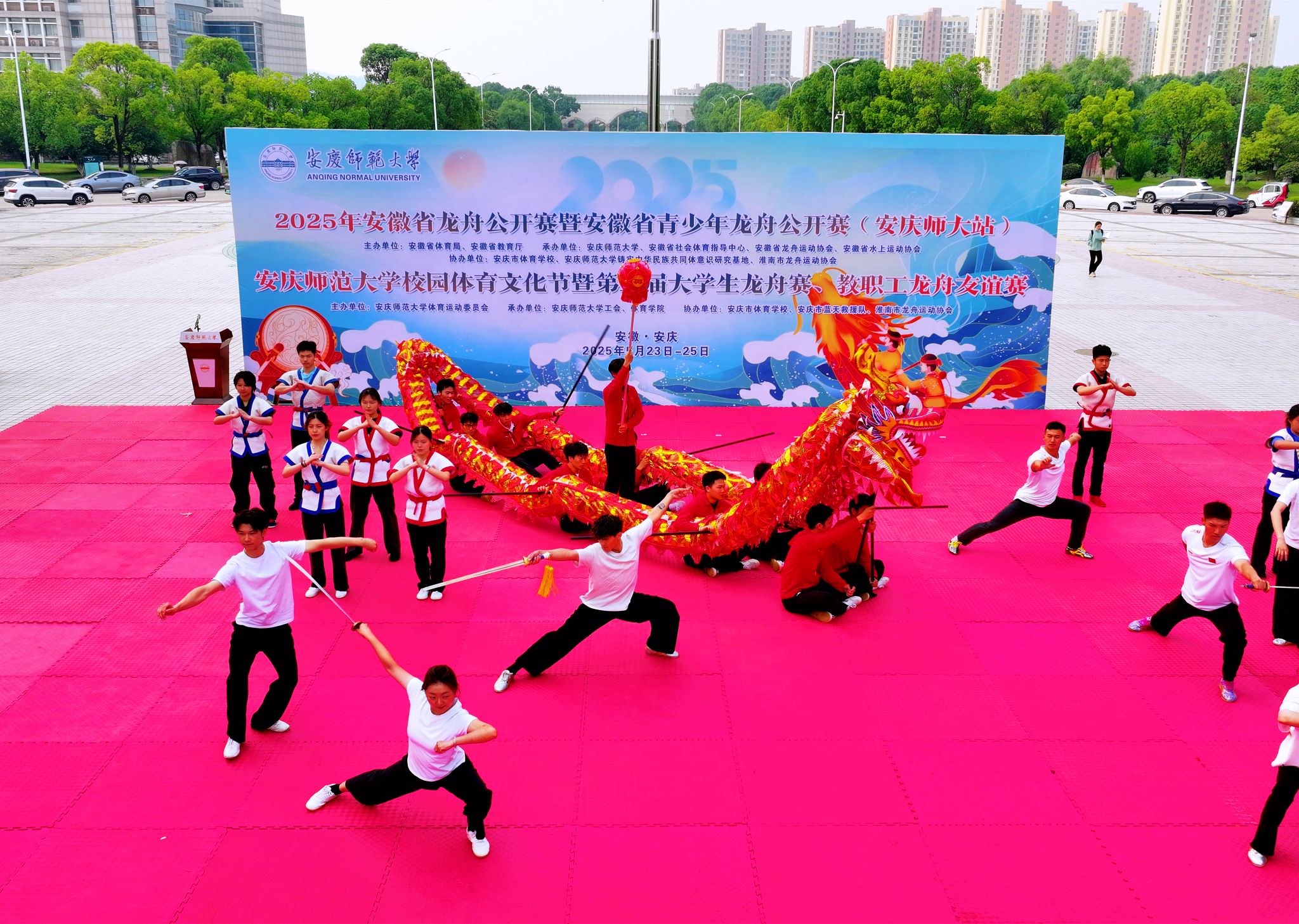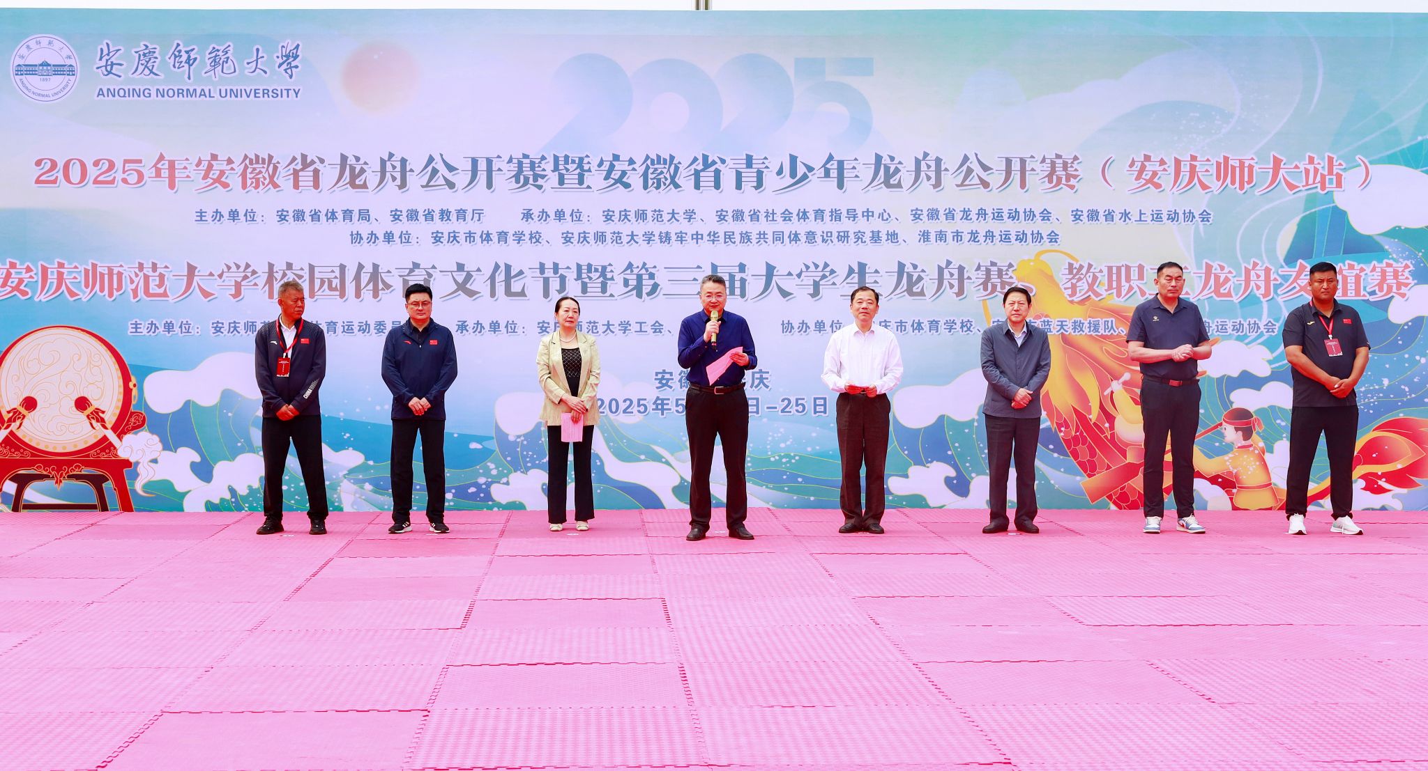 5月24日,2025年安徽省龍舟公開賽暨安徽省青少年龍舟公開賽(安慶師大站)在我校龍山校區雙龍湖舉辦。來自各地的健兒們以舟為筆、以槳為墨,揮寫出屬于龍舟競技的澎湃韻律。