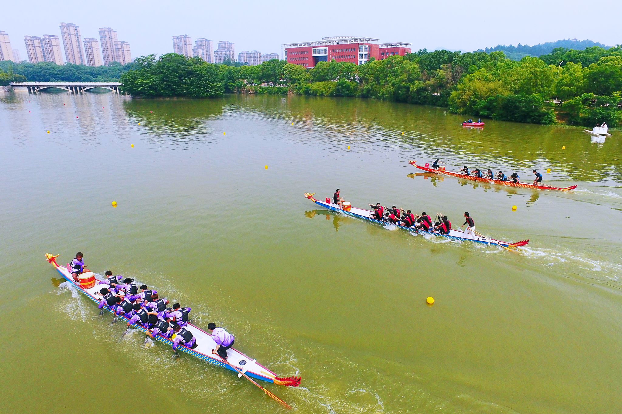 5月25日上午,學校校園體育文化節暨第三屆大學生龍舟賽、教職工龍舟友誼賽順利舉辦,共有12支學生隊伍、9支教工隊參加了比賽。