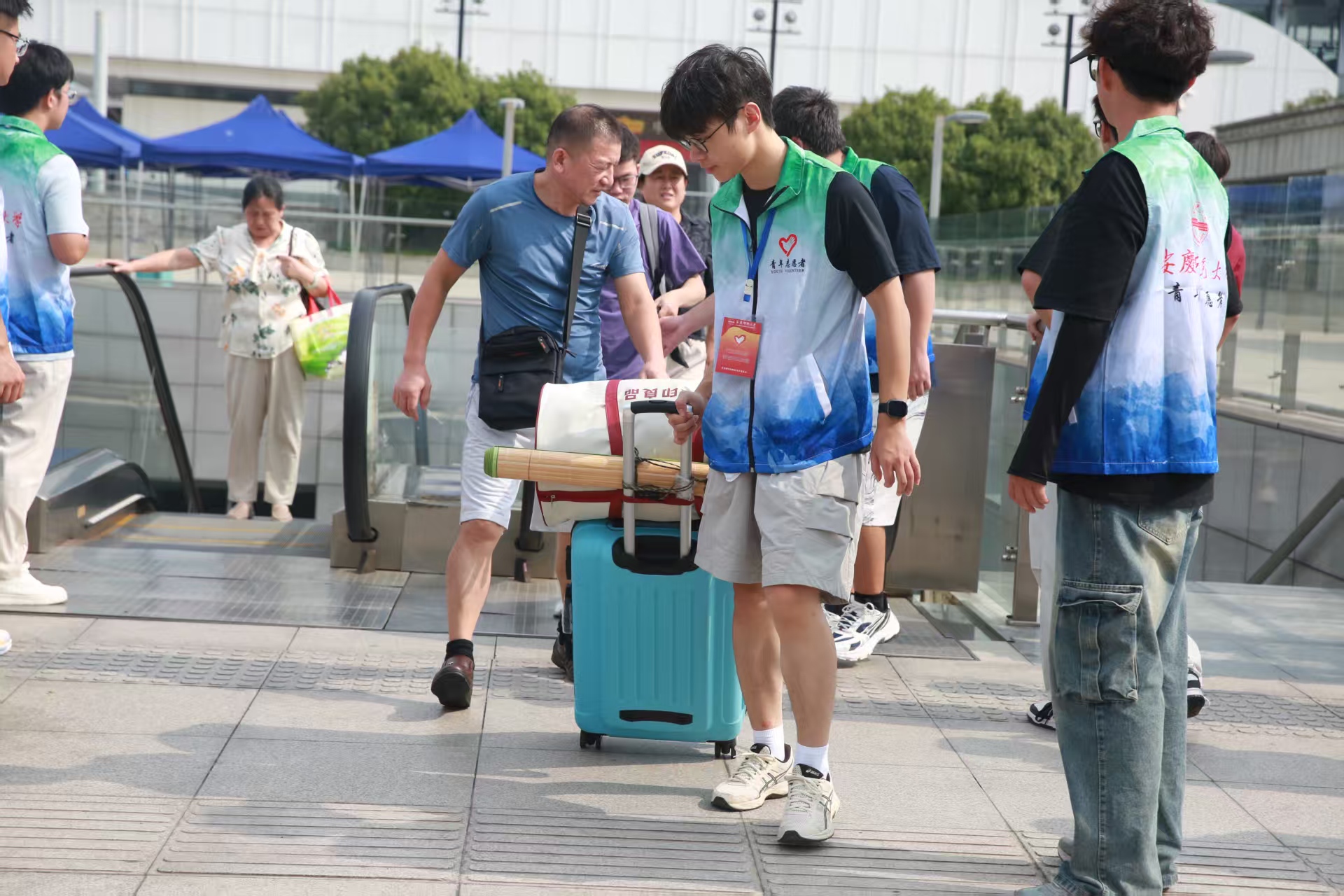 學校推出諸多人性化舉措,新生家長與私家車輛可進入校園,不少家長走進校園,參觀孩子未來將要學習和生活的地方。學校在校內配備了校園巴士、共享單車,解決了新生及家長通勤顧慮。學校迎新志愿者前往高鐵站、汽車站做好服務工作,確保新生安全、快捷抵達校園。“去年開學時我受到了很多學長學姐的幫助,我也想把這份愛傳遞下去?!庇轮驹刚摺⑿侣剛鞑W類2024(1)班的葉凡表示,盡管迎新任務繁重,但倍感幸福。