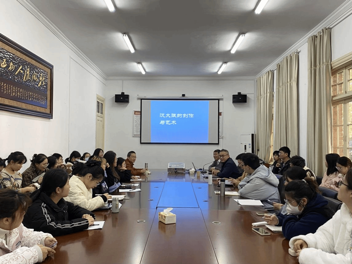 許結教授結合大量的漢賦作品,從職官身份、禮樂制度、京都文明三個角度,論述漢大賦的興盛,進而分析漢大賦作為雅文學的藝術特征、漢大賦創作對后世文學之影響,及其對當今文化建設的啟發。許教授分享了自己多年對漢大賦研究的體會,鼓勵大家在學習和研究的過程中要進行文本細讀,深入感受傳統文化的魅力。講座結束后,他和與會師生還進行了深入交流。