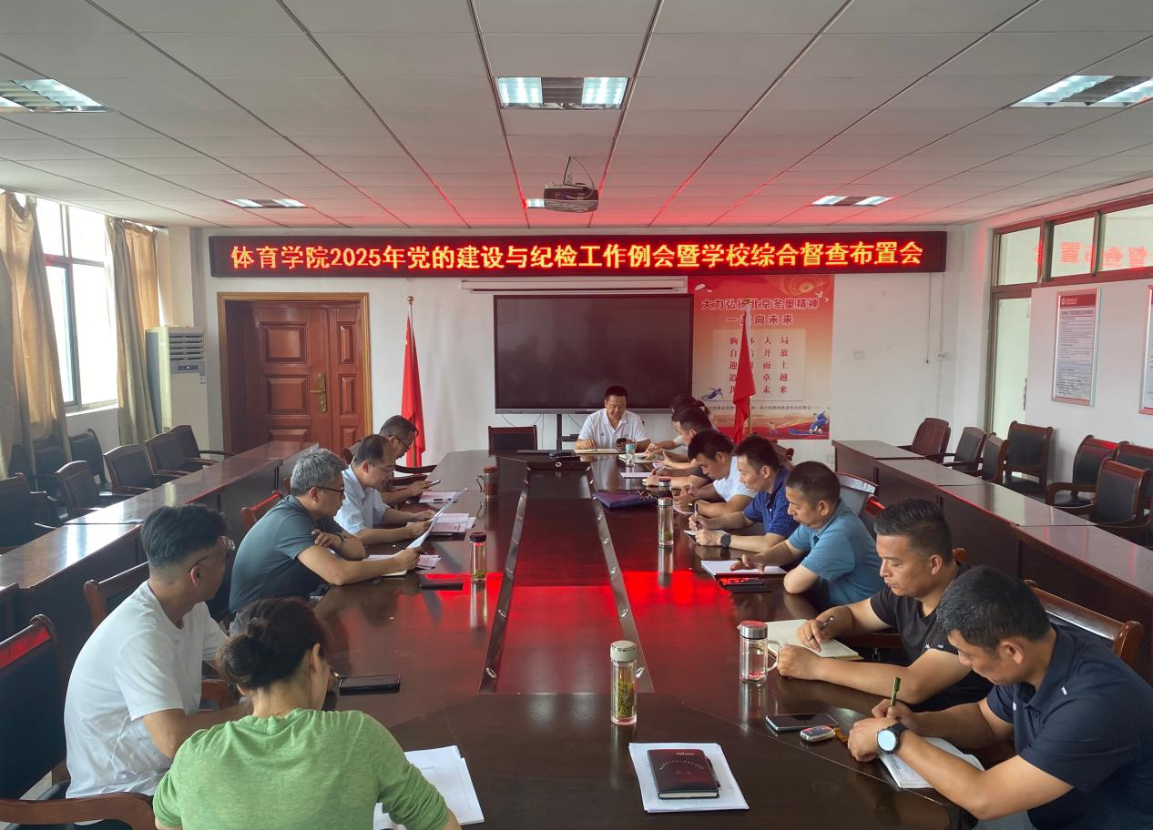 會議傳達了學校近期召開的深入貫徹中央八項規定精神學習教育學查改一體推進大會暨黨務工作例會精神,學習了《八項規定改變中國》、習近平總書記考察河南重要講話精神,傳達、布置了學習教育等有關工作,并就體育學院近期黨的建設、紀檢監察重點任務和學校綜合督查工作進行安排布置。