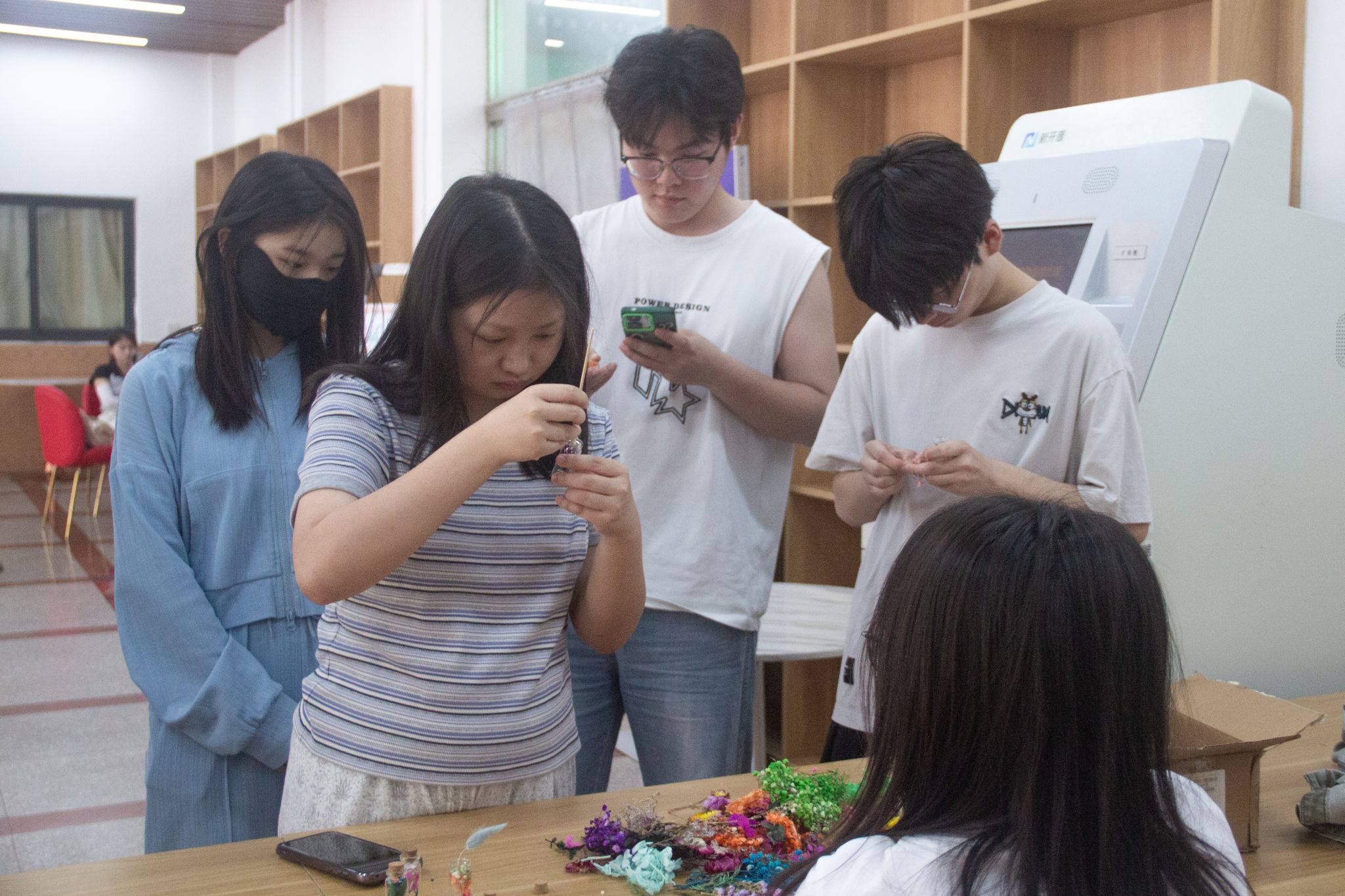 活動現(xiàn)場,長桌上整齊陳列著波點貼、木塞玻璃瓶與繪畫紙筆,一場別開生面的 “心靈收納” 之旅悄然開啟。學生們將干花與書寫情緒狀態(tài)的紙條封存于玻璃瓶,在折疊文字與擺放花束的過程中釋放壓力情緒。2024 級中國語言文學類專業(yè)(1)班唐欣分享道:“當壓抑的情緒隨著干花被封存進透明容器,仿佛看到那些隱秘的心事正在陽光下慢慢舒展。這種充滿儀式感的表達,讓我學會理性與情緒對話。”