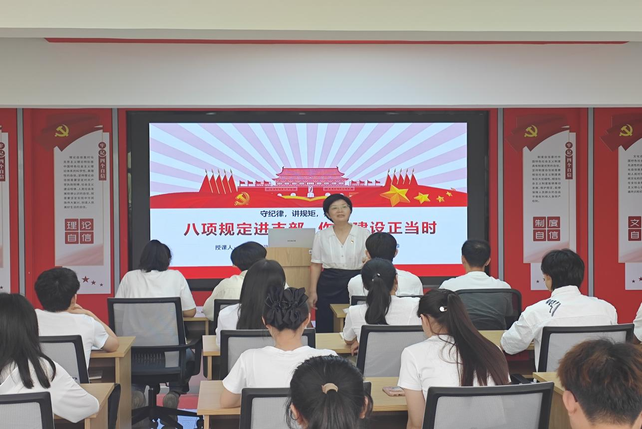 數(shù)理學(xué)院黨委副書記彭芳珍以“八項規(guī)定進支部 作風(fēng)建設(shè)正當(dāng)時”為主題為同學(xué)們講授專題黨課。她圍繞中央八項規(guī)定具體內(nèi)容,深入淺出地闡釋了紀(jì)律規(guī)矩的內(nèi)涵與實踐要求,作風(fēng)建設(shè)的重要性;講解違反中央八項規(guī)定精神的主要表現(xiàn),以真實案例敲響警鐘。她指出,學(xué)生黨員作風(fēng)建設(shè)是筑牢理想信念根基、發(fā)揮先鋒模范作用、引領(lǐng)校園清風(fēng)正氣、培育新時代德才兼?zhèn)淙瞬诺母颈U稀P聲r代的學(xué)生黨員一定要強化責(zé)任與擔(dān)當(dāng),帶頭“守紀(jì)律、講規(guī)矩、樹新風(fēng)”。