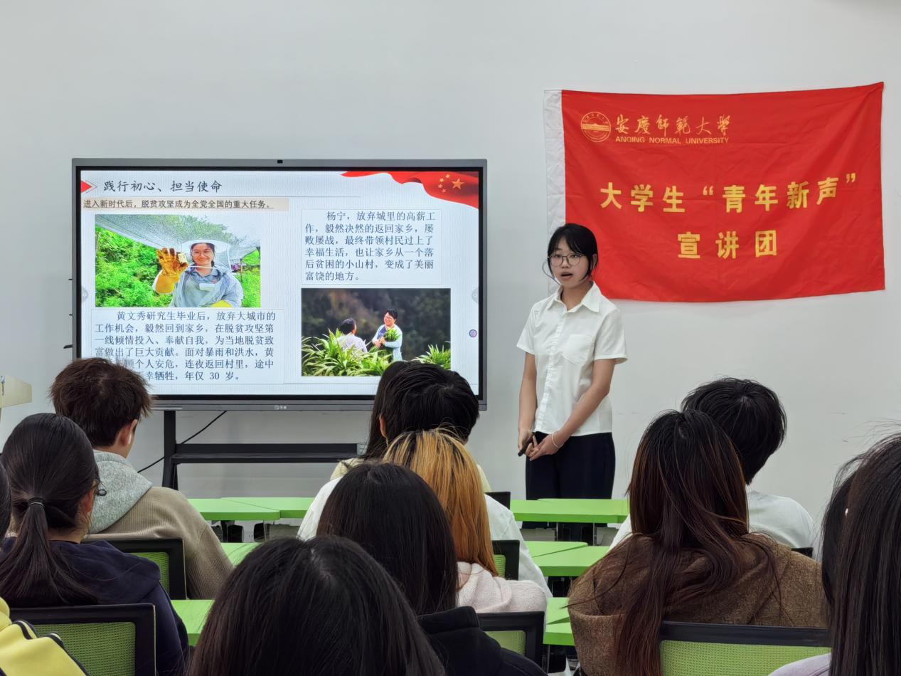 “如何讓黨的精神、黨的理論‘飛入尋常百姓家’?”這是縈繞在安慶師范大學大學生“青年新聲”宣講團成員們心頭的一個問題。3月至5月,在中國共產黨成立104周年之際,“青年新聲”宣講團成員們依據第一批中國共產黨人精神譜系,分批次制作出特色“宣講菜單”,采取定期定點開展宣講的方式,創新推出“學生點單,我們來講”的新宣講模式。