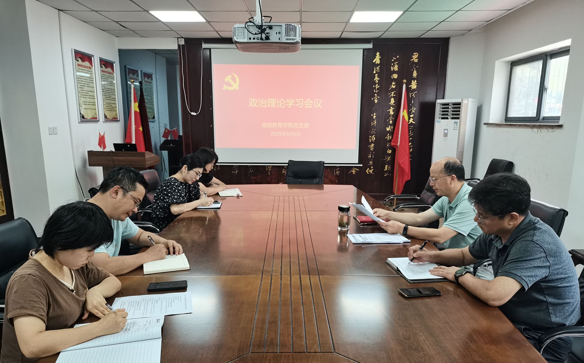 6月6日,繼續教育學院黨支部召開黨員大會,開展深入貫徹中央八項規定精神學習教育專題學習。會議由繼續教育學院黨支部書記韋長發主持。