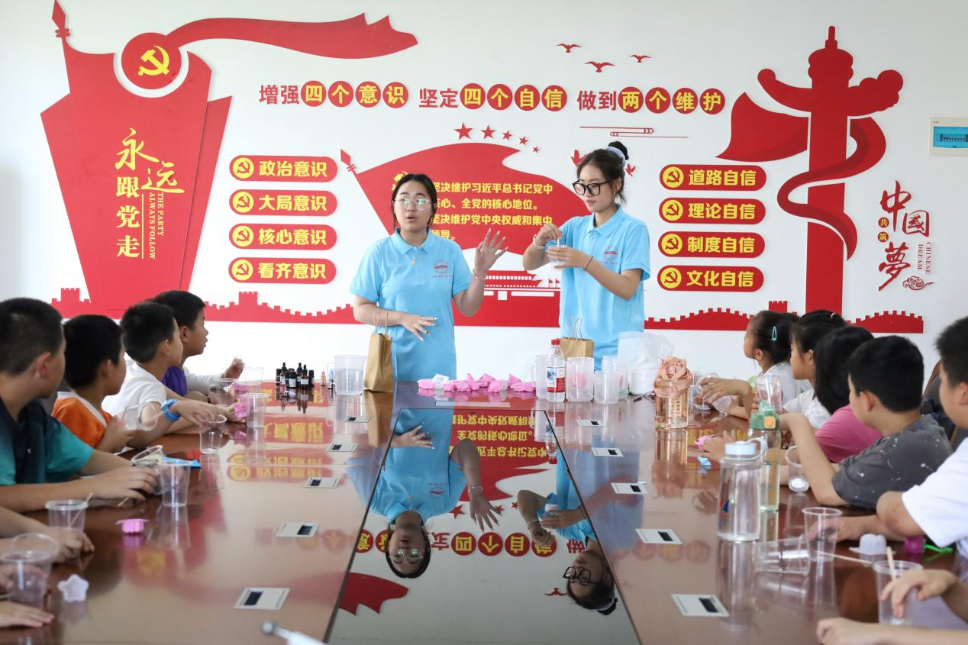 “小朋友們好,歡迎來到安慶師范H2O傳習小課堂!在這里,我們要用神奇的化學知識‘變魔術’!”化學(師范)專業2024級(3)班羅婷婷說。近日,化學化工學院“學以致用——H2O傳習工藝坊”暑期社會實踐團攜手化學化工學院“砹鋅”志愿隊走進迎江區安慶恒大綠洲長青社區為20余名小朋友開啟化學科普之旅,將書本里的化學知識變成看得見、摸得著的趣味實踐。