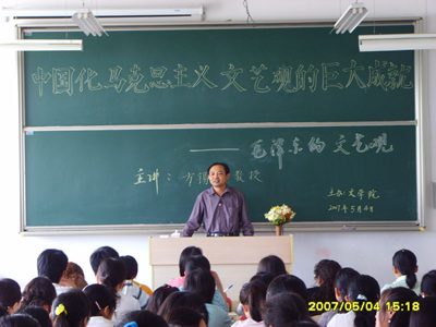 5月4日下午,文學院方錫球教授在文源樓405教室作了題為“中國化馬克思主義文藝觀的巨大成就——毛澤東的文藝觀”的學術報告,文學院120余名學生聆聽了報告。