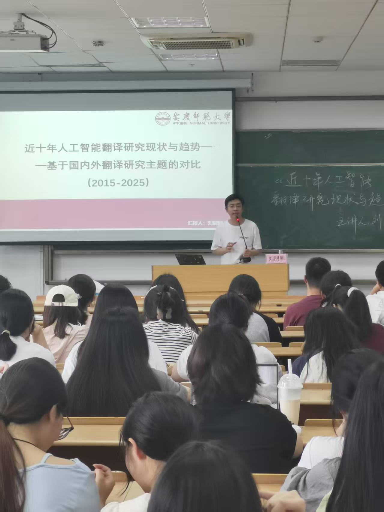 5月21日,外國語學院劉朋朋博士作題為《近十年人工智能翻譯研究現狀與趨勢》的專題學術報告。外國語學院翻譯專業本科生、研究生、部分教師參加了報告會。趙衢博士主持了報告會。