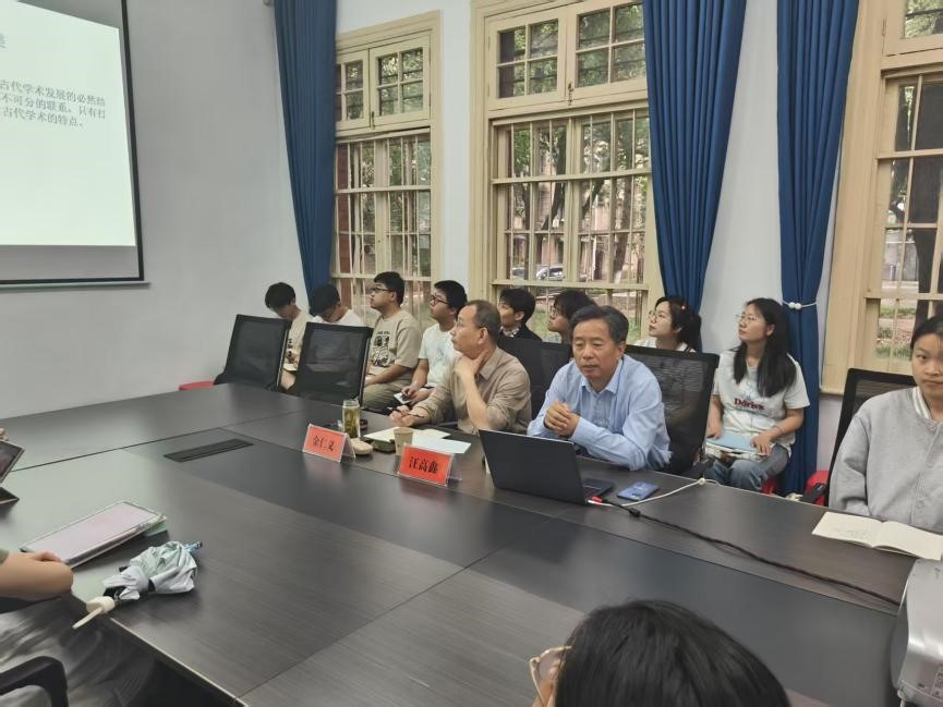 講座聚焦當前史學史研究前沿領域,系統闡釋了以經、史、子、集四部分類為切入點開展史學研究的創新路徑。汪高鑫教授首先從學術史維度梳理了四部分類體系的演進脈絡,論證了運用這一學術框架進行史學研究的必要性與可行性。通過“經史互鑒”“子史交融”“文史互通”三大研究維度,他深入剖析了經學義理、諸子思想與文學藝術對史學的深層滲透,揭示出中國史學發展的多維動力。在對文史結合進行闡釋時,汪高鑫教授列舉了《左傳》《史記》《資治通鑒》等例子,生動詮釋了語言表述對歷史敘事的重要作用。他強調,文學作品中蘊含的史學基因與歷史文本承載的審美價值,為跨學科研究開辟了廣闊空間,這種“以文證史”的研究范式既能拓展學術視野,又能增強歷史敘事的感染力。講座尾聲,汪高鑫教授對在座師生提出的問題予以耐心解答,大家對講座內容中感興趣的話題展開多維討論,現場氛圍熱烈。