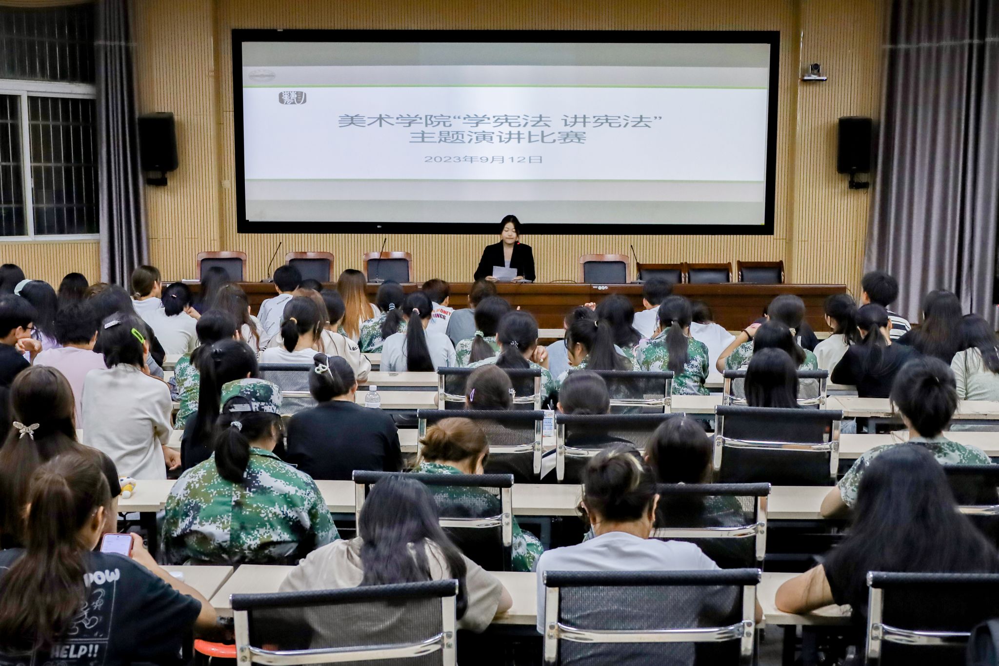 9月12日,美術(shù)學(xué)院在學(xué)院學(xué)術(shù)報(bào)告廳舉辦“學(xué)憲法 講憲法”主題演講比賽,22名來自學(xué)院不同專業(yè)班級(jí)的選手參與比賽,200余名學(xué)生到場(chǎng)觀看。