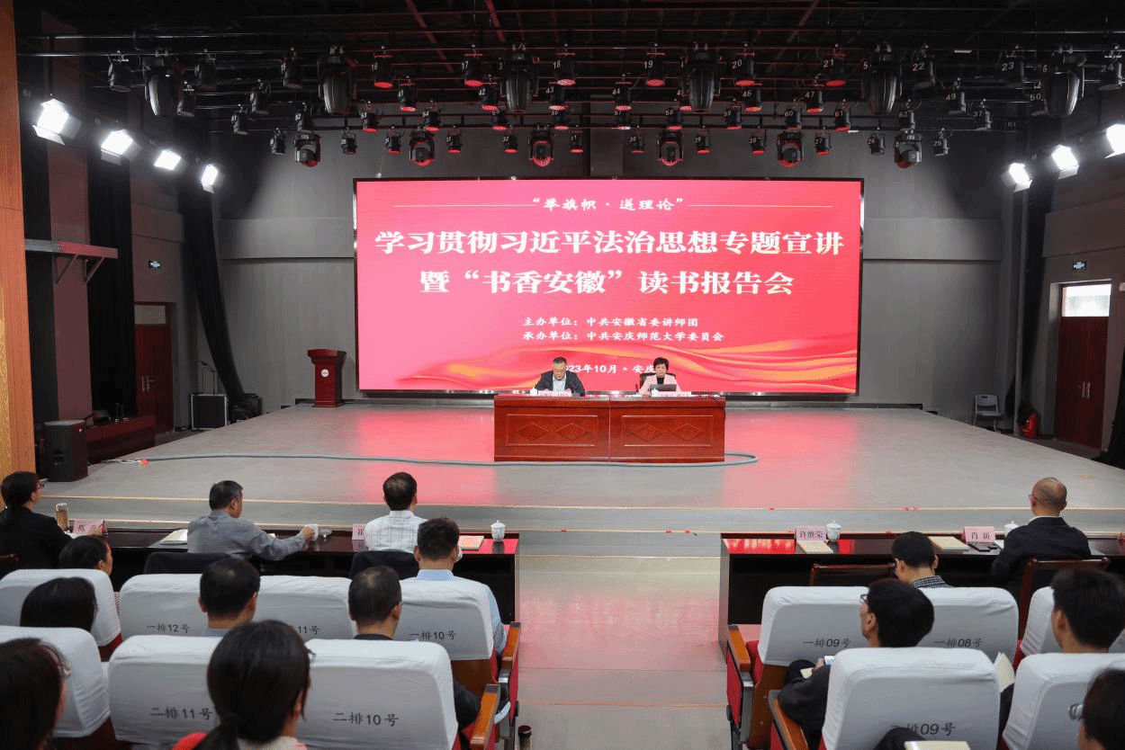 10月19日,學(xué)習(xí)貫徹習(xí)近平法治思想專題宣講報告會暨校黨委理論學(xué)習(xí)中心組學(xué)習(xí)(擴(kuò)大)會在傳媒學(xué)院報告廳舉行,安徽省委講師團(tuán)專家?guī)旄叨诵v專家、安徽大學(xué)法學(xué)院教授程雁雷應(yīng)邀作宣講報告。校黨委書記許繼榮主持報告會。