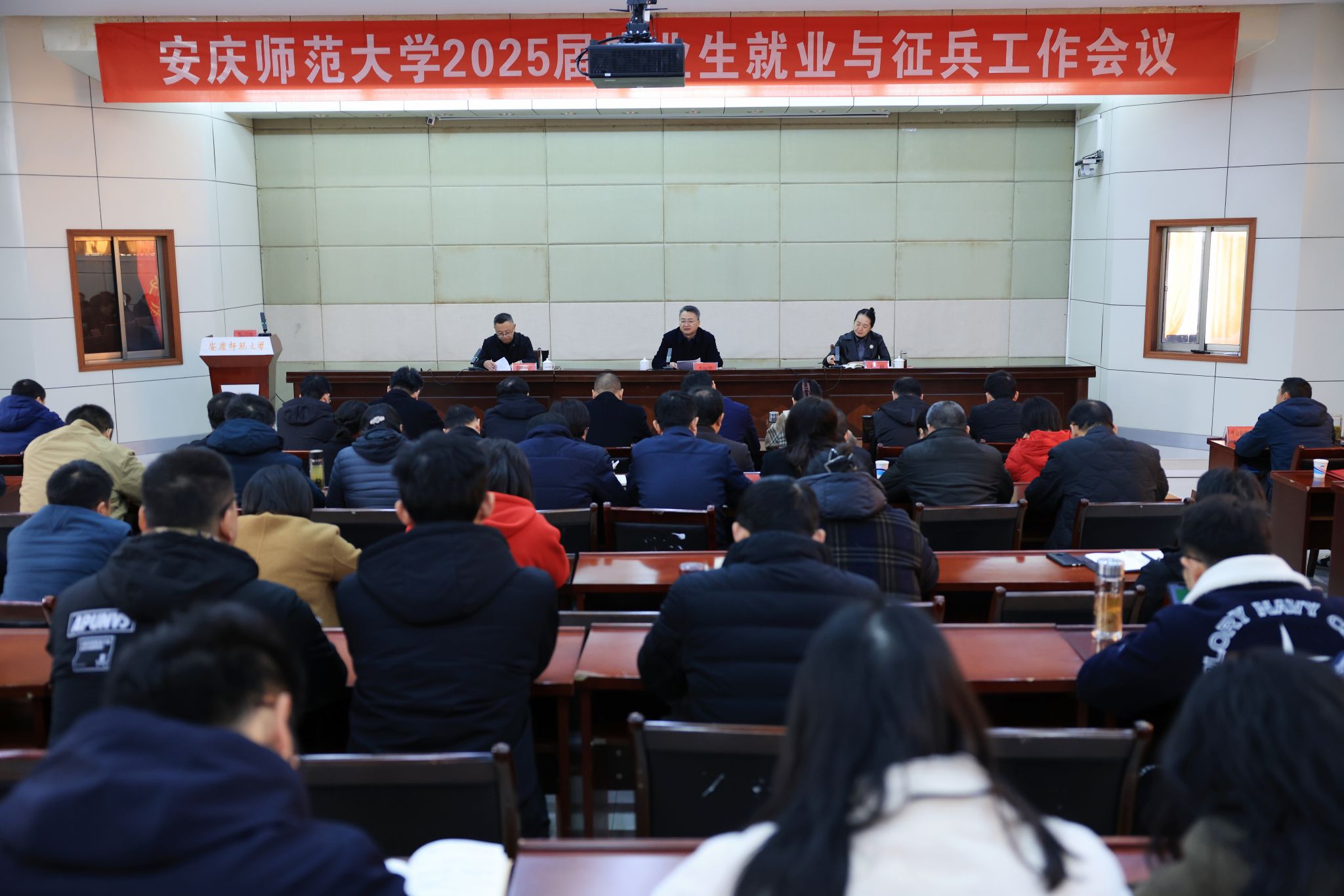 12月6日,學校在龍山校區行政樓一樓會議室召開2025屆畢業生就業與征兵工作會議。校黨委書記李福華,校黨委常委、副校長吳瓊、徐曉寧出席會議。學校就業(征兵)工作領導小組成員單位主要負責人,各學院主要負責人、分管負責人、畢業班輔導員、就業秘書,學生處、研究生院工作人員參加會議。